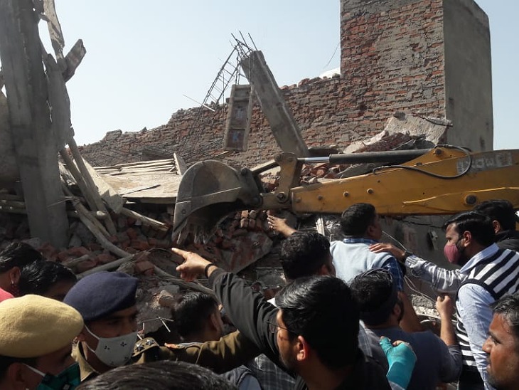 अजमेर: अजमेर जिले में शुक्रवार दोपहर करीब 2 बजे बड़ा हादसा हुआ। अजमेर रोड पर 2 मंजिल निर्माणाधीन इमारत गिरने से दर्जनभर लोग दब गए। बचाव व राहत कार्य शुरू कर 4 लोगों को बमुश्किल बाहर निकाला गया है। ये चारों गंभीर रूप से घायल हैं। अभी कई और के फंसे होने की आशंका है।