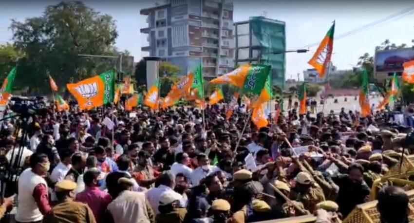 आंदोलनकारियों के बेरिकेट्स तोड़ने पर पुलिस ने लाठियां मारकर कार्यकर्ताओं को खदेड़ दिया। बीजेपी प्रदेशाध्यक्ष सतीश पूनियां, युवा मोर्चा अध्यक्ष हिमांशु शर्मा समेत कई युवा मोर्चा कार्यकर्ताओं को पुलिस ने हिरासत में ले लिया। इस दौरान कई कार्यकर्ताओं को चोटें भी आईं। सतीश पुनिया को विद्याधर नगर थाने पर नज़रबंद कर दिया गया है।