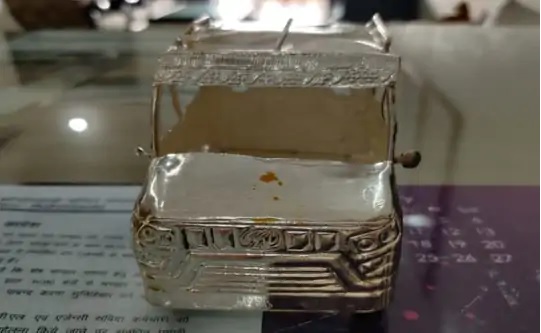 चित्तौड़गढ़: मेवाड़ के कृष्ण धाम श्रीसांवलिया जी मंदिर के में एक भक्त ने चांदी से बनी 177 ग्राम की जेसीबी भेंट की है। जेसीबी में लाइटिंग सिस्टम भी लगा है। भक्त ने बिजनेस में लाभ होने पर चांदी की जेसीबी भेंट करने का मन बनाया था। मनोकामना पूरी होने पर भक्त अपनी क्षमता अनुसार सेठ को भेंट देते हैं। दो दिन पहले ही प्रतापगढ़ निवासी एक भक्त ने 158 ग्राम चांदी से निर्मित जीप भेंट की।